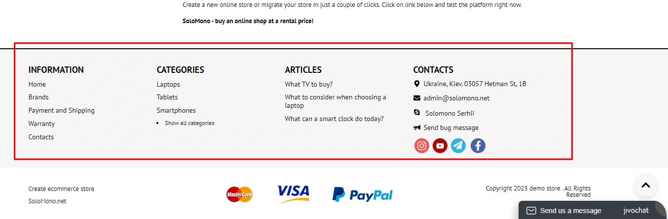 The Solomono team has developed a convenient functionality for working with the design of your online store. Which greatly simplifies service processes: making a purchase thanks to automation, increasing the level of demand by advertising goods, which stimulates the interest of new users. Also, the team has developed forms in the admin panel for collecting reviews, comments and opinions of users about the products of your online store.