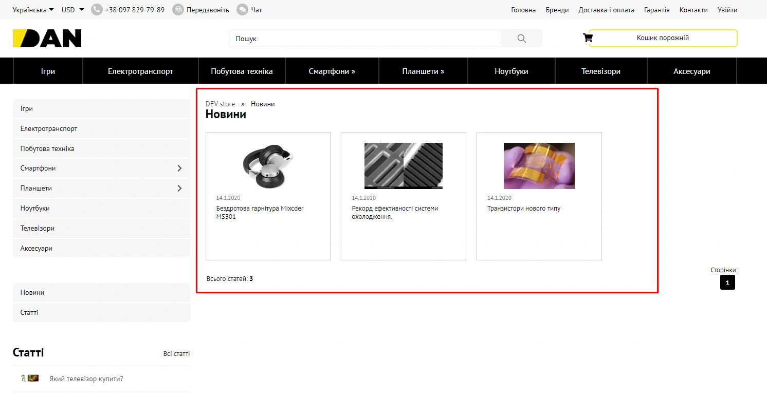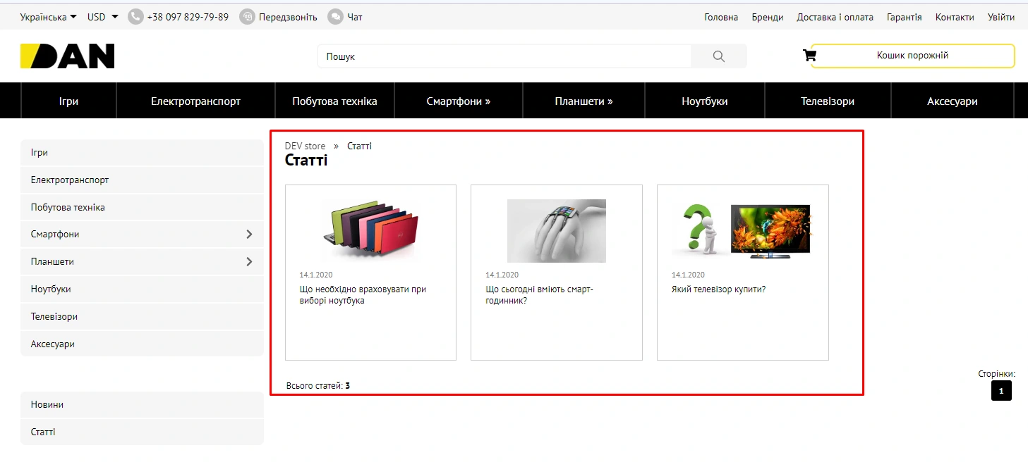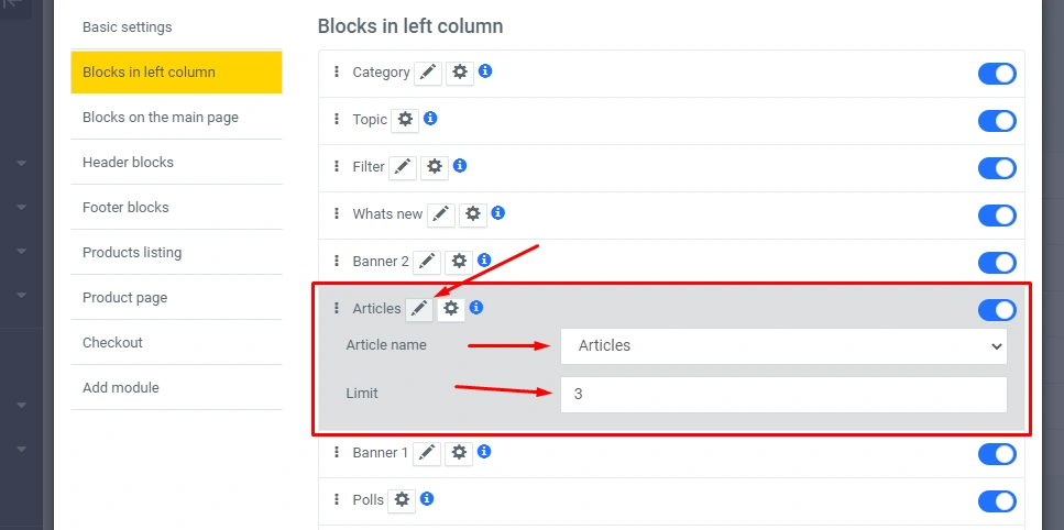 In the articles section, you can enable/disable the block with articles/news in the left column of your site: