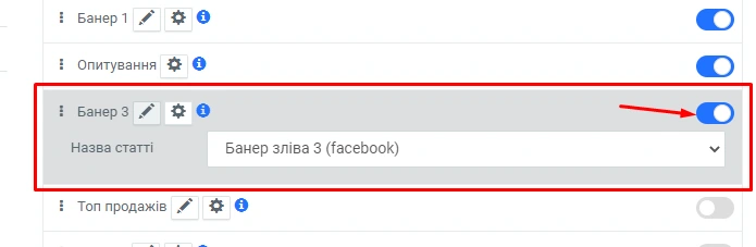 In the "Banner 3" section, you have the opportunity to directly enable/disable the banner block in the left column of your site