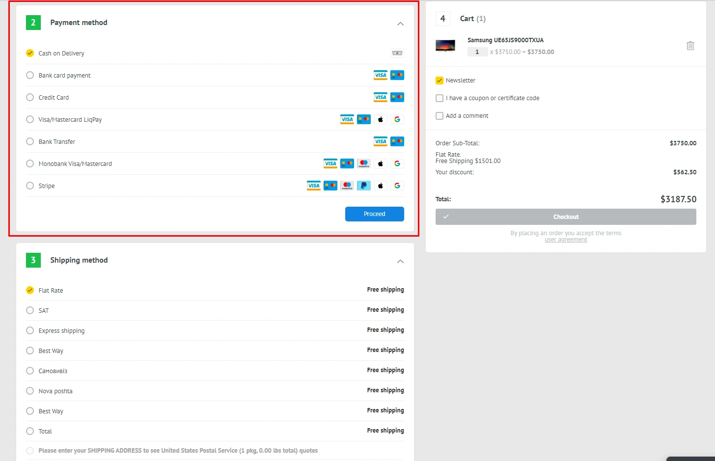 This module includes such payment systems: LiqPAY, Portmone, Monobank, WayForPay, Easypay, Oschadbank, Fondy, Stripe, Sage Pay, Authorize.net, PayU and MultiSafepay.