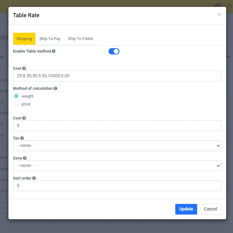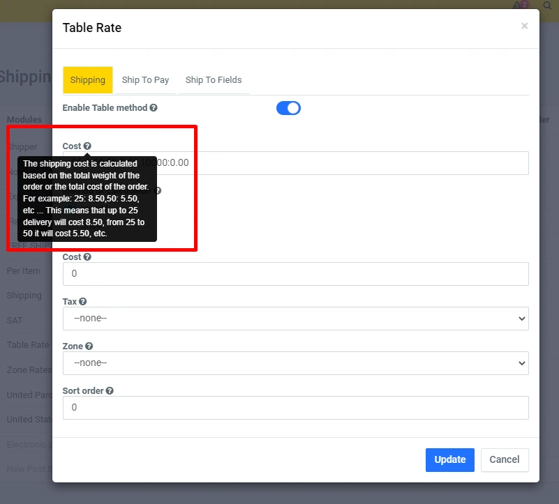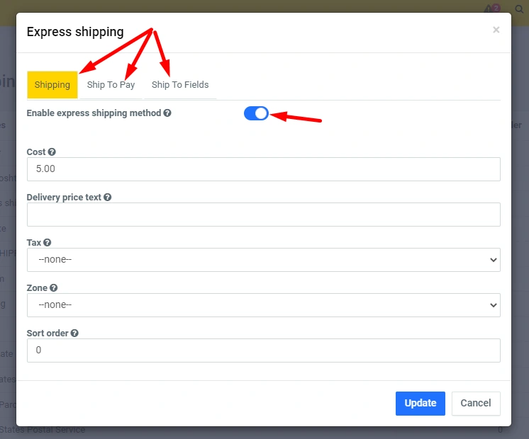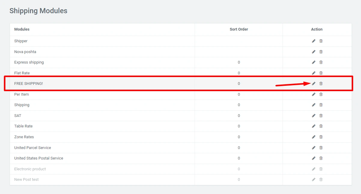 Click on the edit icon and in the modal window you can set the desired functionality at your discretion. The difference from other fixed delivery options is that here in the "Cost" line indicate the price in numbers or in the "Delivery price text" line indicate the delivery price - in text, you need to use one of the options, if you wrote in numbers, then it is better not to use the text :