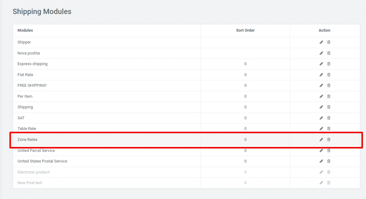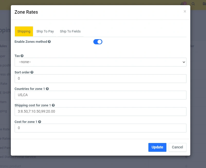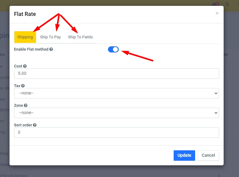 In the administrative panel, you can enable or disable the module, also set the tax, zone, shipping cost for the zone, and set the position of this module among other delivery modules: