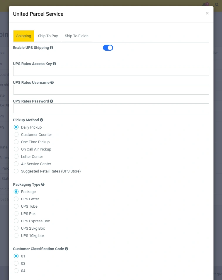 After receiving the "UPS Rates Access Key" in the administrative part, you should fill in the required fields "UPS Rates Access Key", "UPS Rates Username", "UPS Rates Password", after the required fields you can choose a flexible setting for your store, you can set and packaging, select the country you are going to work with, you can specify that this will be a test mode and test this module and many more settings. For the user, the module will be displayed when placing an order in the "Shipping Methods" list if his country is served by UPS.