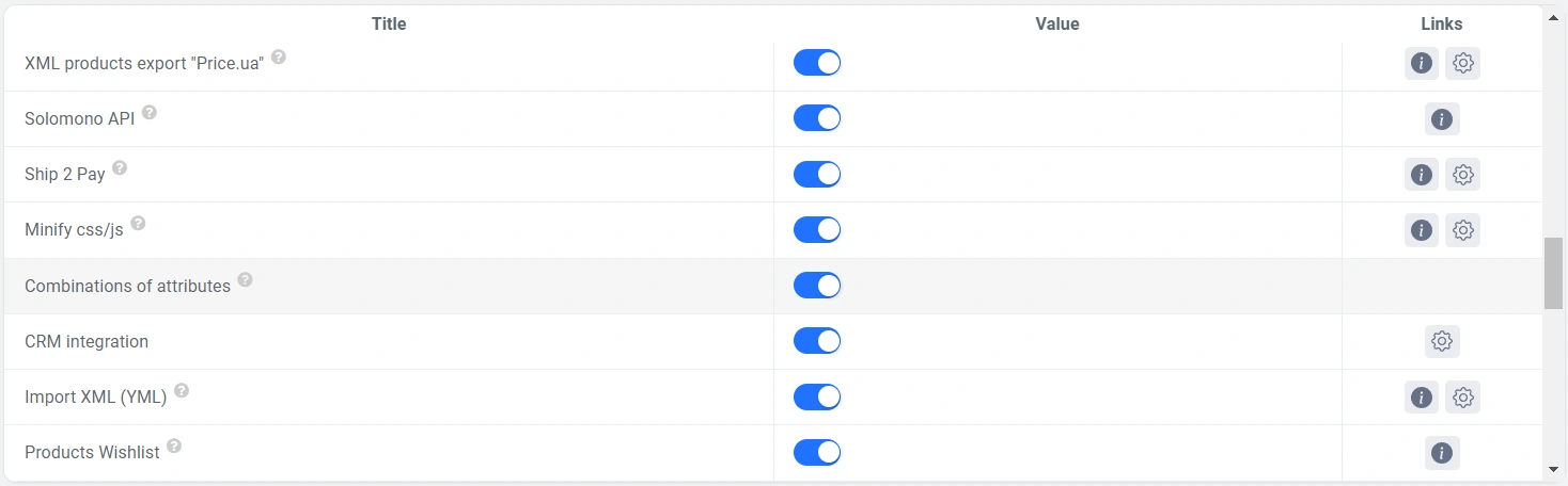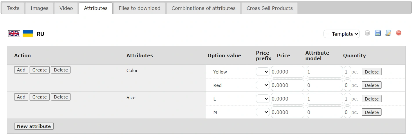 To use this feature, first make sure that the "Combinations of attributes" module is enabled on the "Modules" - "SOLO Modules" page.