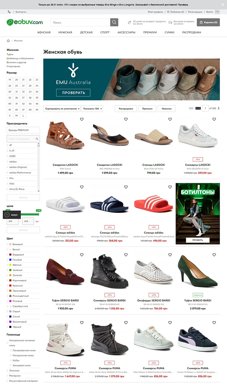 You can create an online shoe store with goods made of genuine leather or with orthopedic shoes. Many are season-specific and sell ugg boots or Timberland-style boots. The target audience will be smaller, but the conversions may be higher due to the narrow direction.