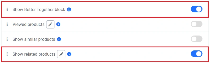 If the "Reciprocal Link" switch is enabled, both products will become related to each other. For example, if product A has related product B, enabling this switch will make product A a related item for product B.