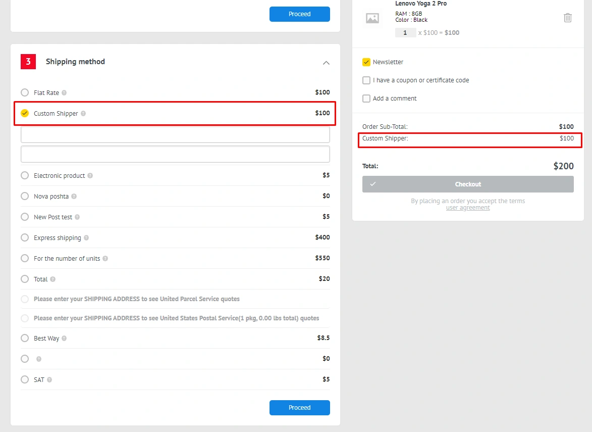 Now, when checking out, an additional delivery option "Carrier" will be available.