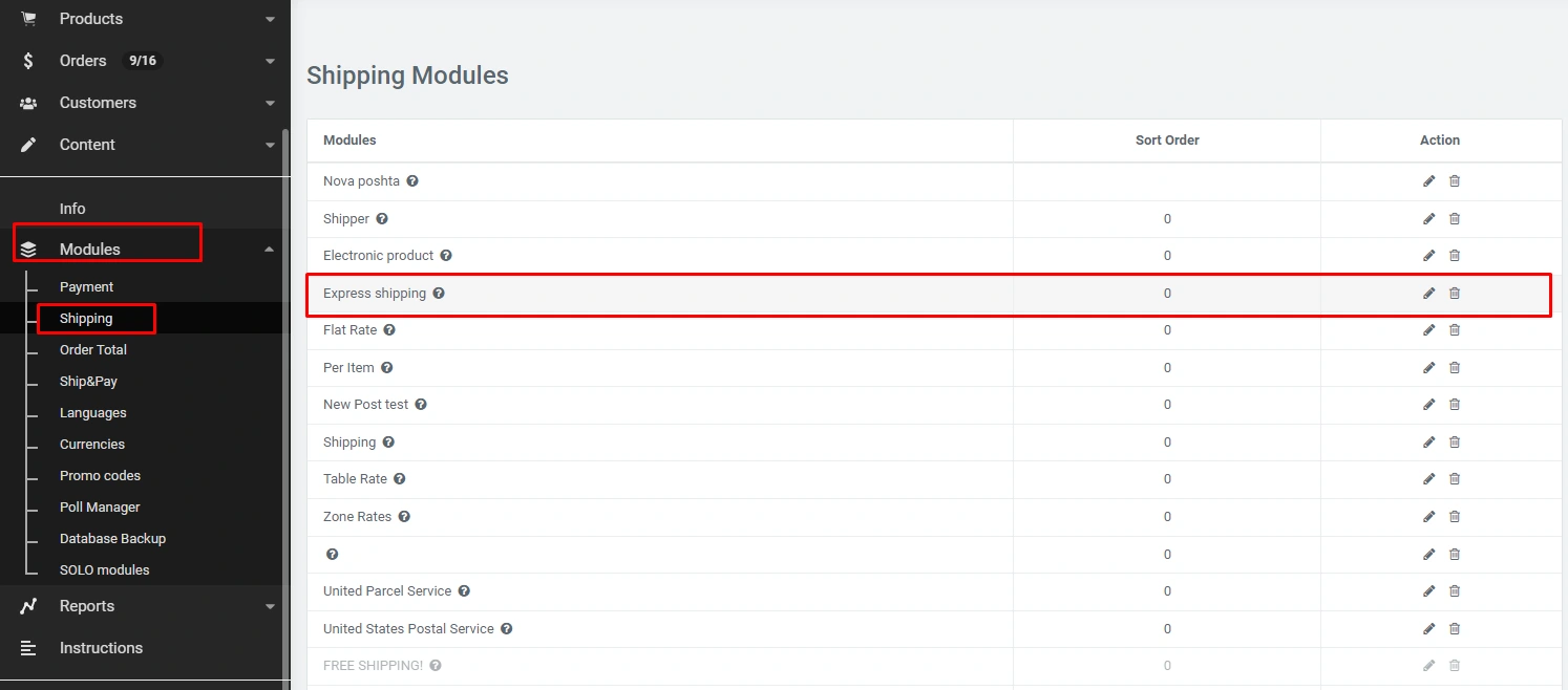 Сonnecting the delivery module "Express delivery" (Express shipping)