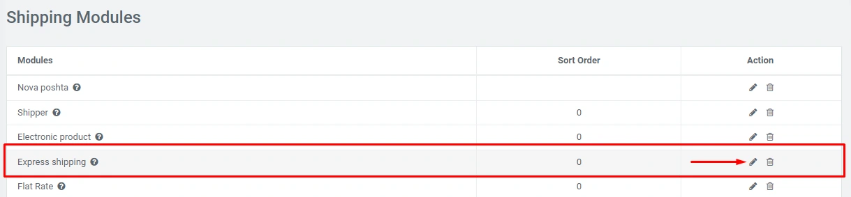 To get started, enable the "Express Delivery" module itself, to do this, in the administration panel, go to "Modules" -> "Delivery" -> "Express Delivery" if it is not active for you, click on the "+" icon