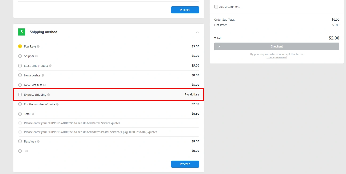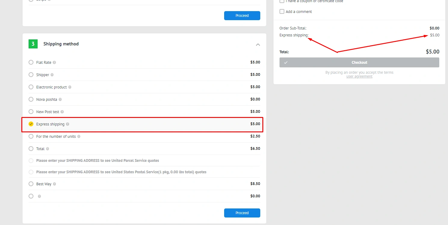 Now, when checking out, an additional delivery option "Express delivery" will be available: