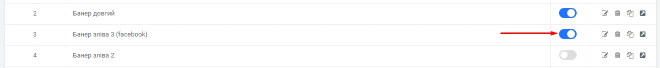 After creating/editing the block, in order for the Facebook banner to start appearing on the site, you need to enable/activate the status:
