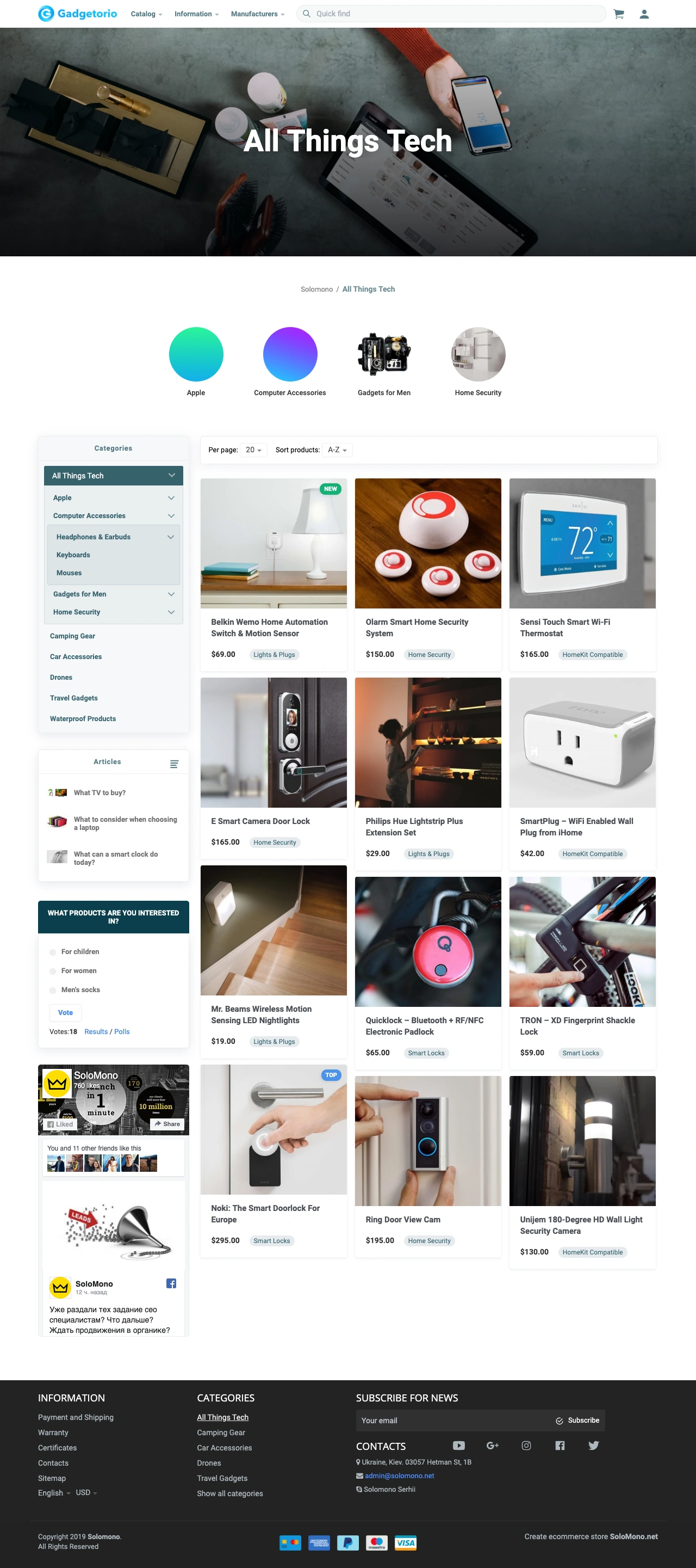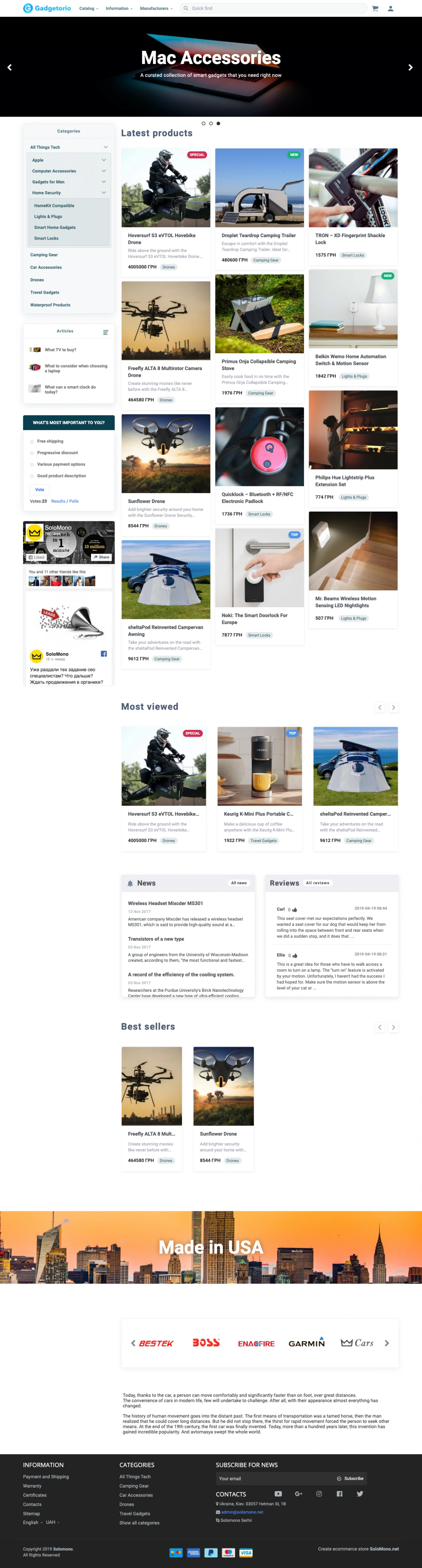 rnrnAdditional engagement is provided through widgets such as Articles, which offer relevant content for gadget enthusiasts; Polls, which invite users to interact and provide feedback; and dynamic social media integration, which helps build a community around the store’s brand.
