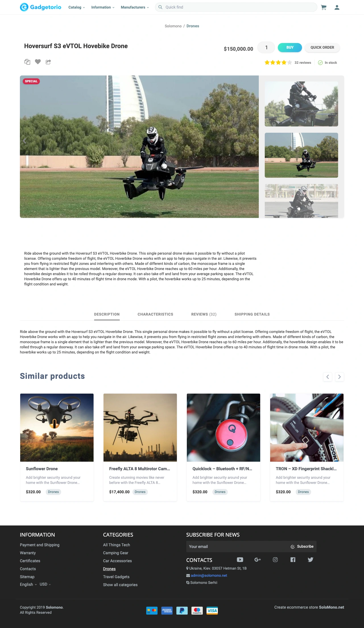 The Gadgetorio template for online stores is specifically designed for retailers specializing in the sale of gadgets and electronics. This template is ideal for stores selling various technological products, such as smartphones, cameras, personal audio devices, and smart home accessories. Its design and functionality are crafted with the needs of tech-savvy shoppers in mind, aiming to provide a seamless and informative online shopping experience. The Gadgetorio template excels at showcasing products, not only highlighting their features and benefits but also effectively engaging users, making it an excellent choice for gadget stores aiming to attract and convert tech enthusiasts.
