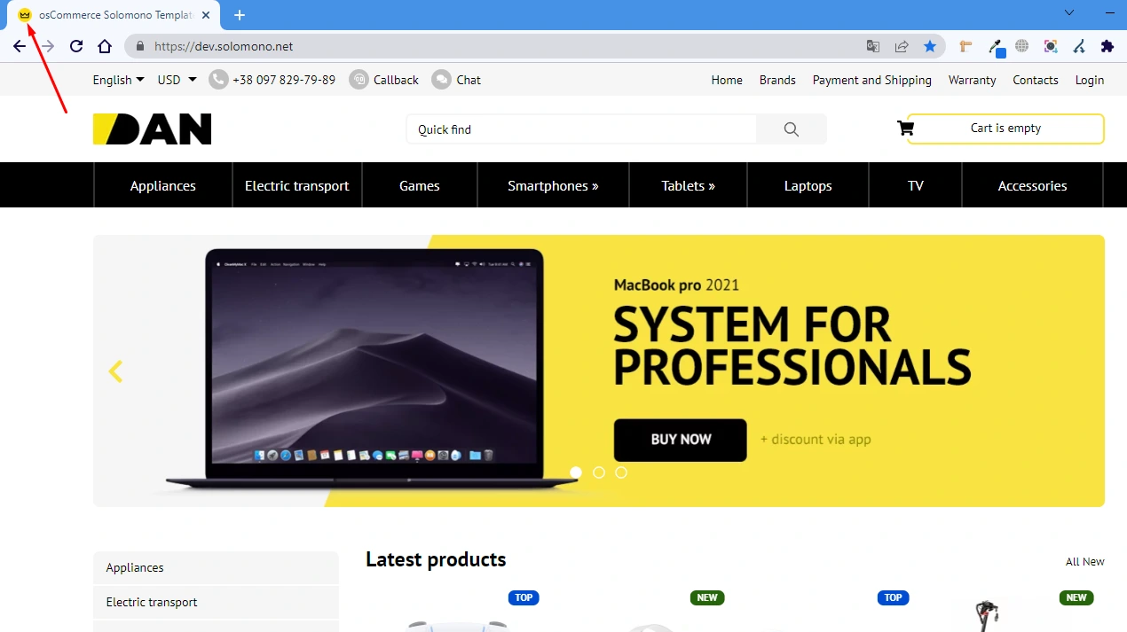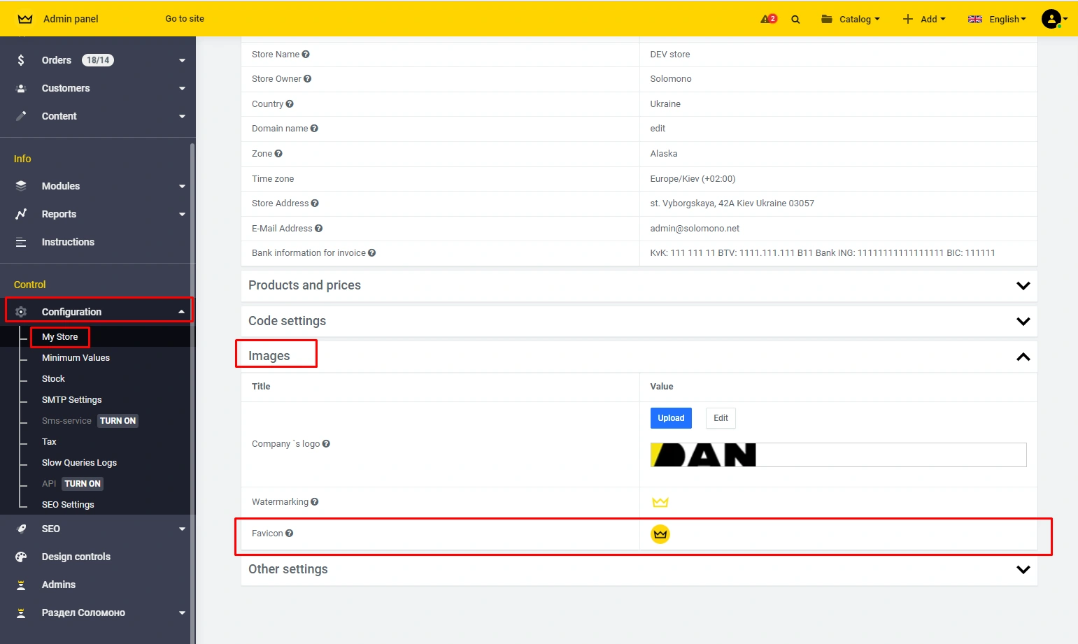 The Solomono team has developed a convenient functionality for working with favicon. With just a few clicks, the favicon is very easy and quick to add to your site.