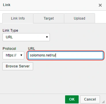 Alternatively, if the image was uploaded on the left panel, you can enter a shortened link such as contact_us.php