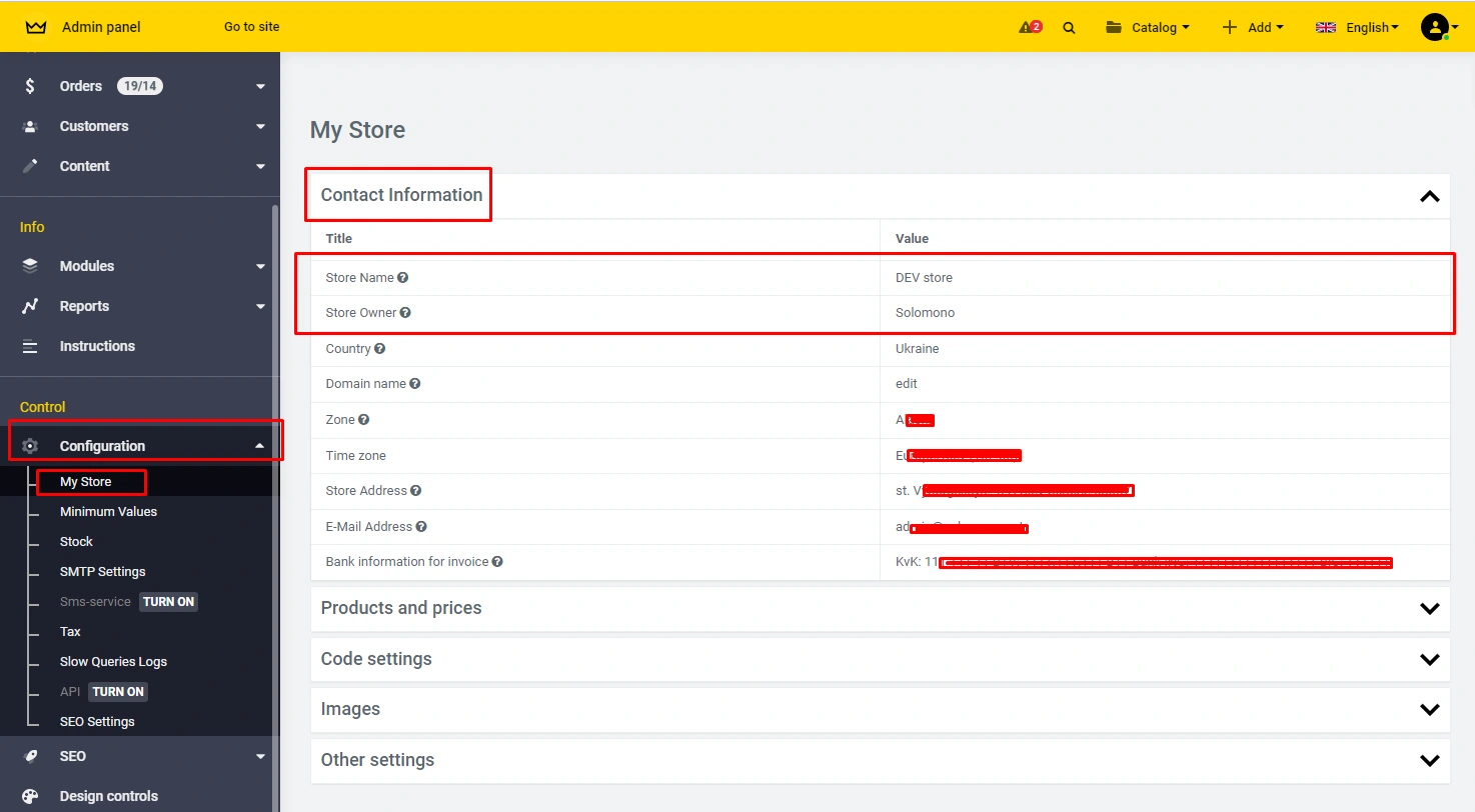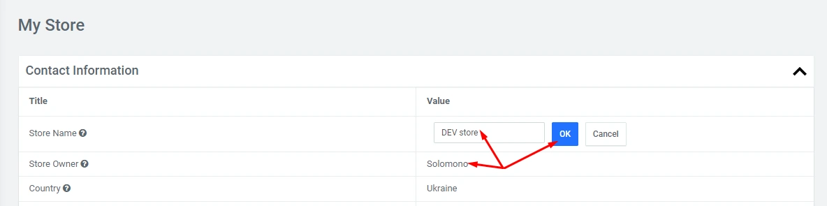 The Solomono team has developed a convenient functionality for working with store settings. And if you have a desire to change the name for your store, you can do it yourself and very quickly. Also here you can replace the store owner.