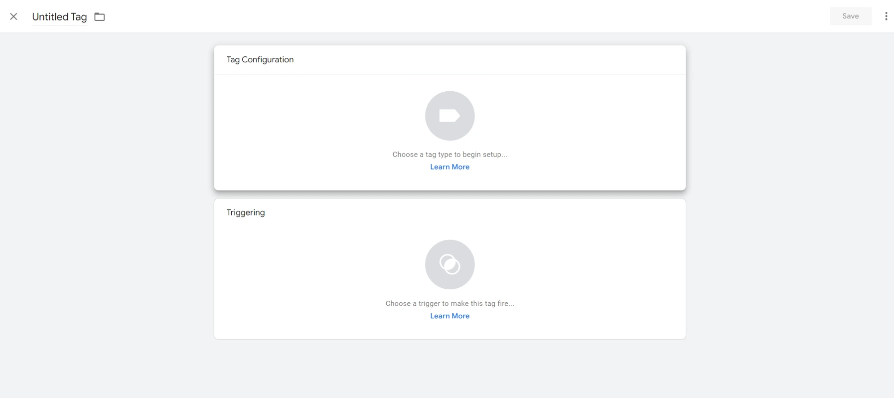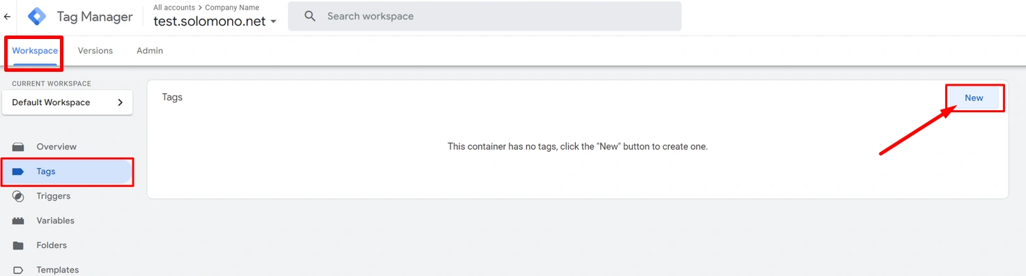 Now you can add tags to your Google Tag Manager account in the Tags tab. To do this, go to the tab and click "New":
