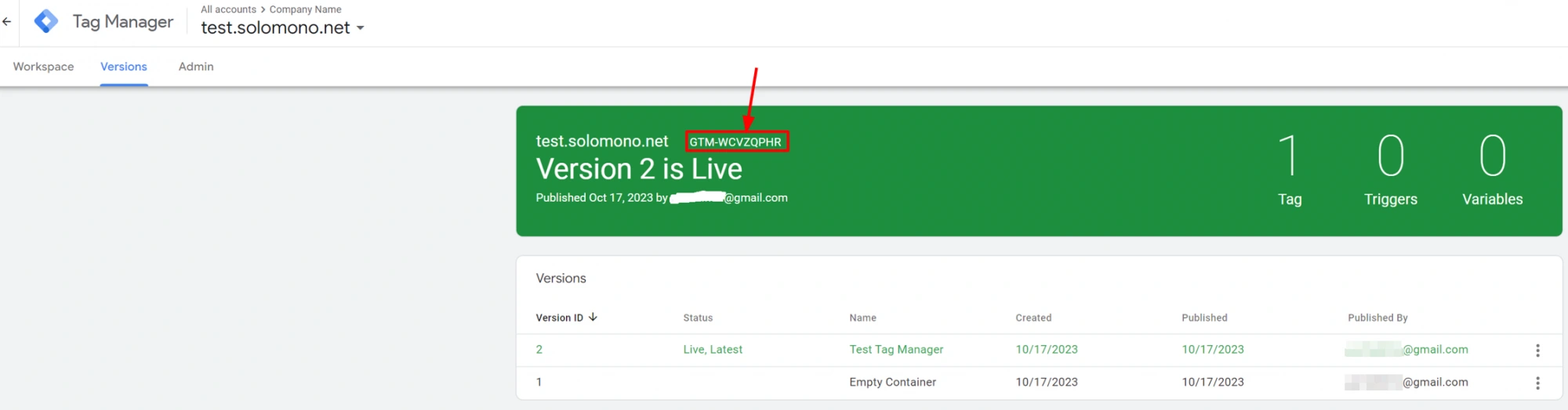 Our tag has been successfully created! Now you can add Google Tag Manager to your website by copying the tag itself: "GTM-XXXXXXXX":