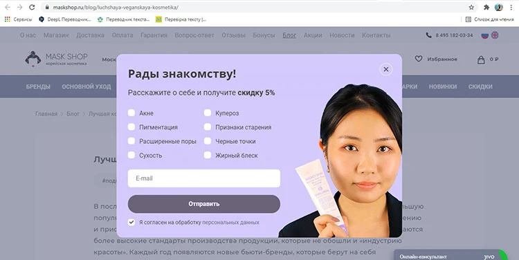In addition to the fact that you will have customer data, there is another good way to collect leads already when you first visit the site. This is how they do it in the online store Mask shop