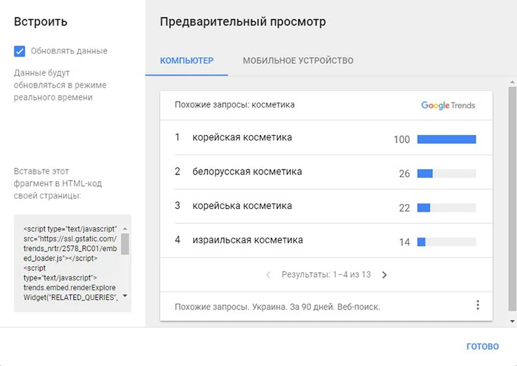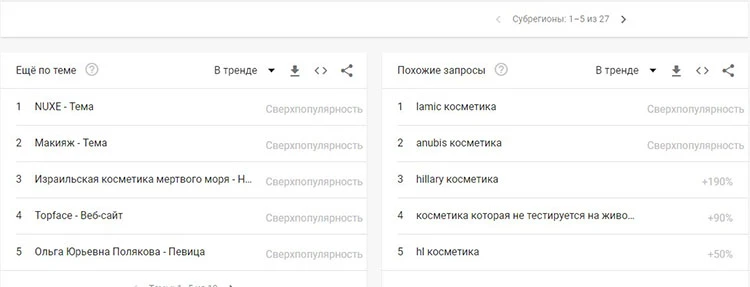 It is not necessary to focus only on Google Trends, as interest can be generated by ads from a blogger or on TV and can be short-lived. Write down all requests from the service in a table and analyze them again through Serpstat or Google Key Planner. If the search queries contain the word “buy”, and the frequency of such queries is at least 10-100, then it makes sense to deal with this cosmetic brand or direction.