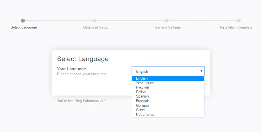 4. You will see installation page with language selectbox. You can chose prefered installation language