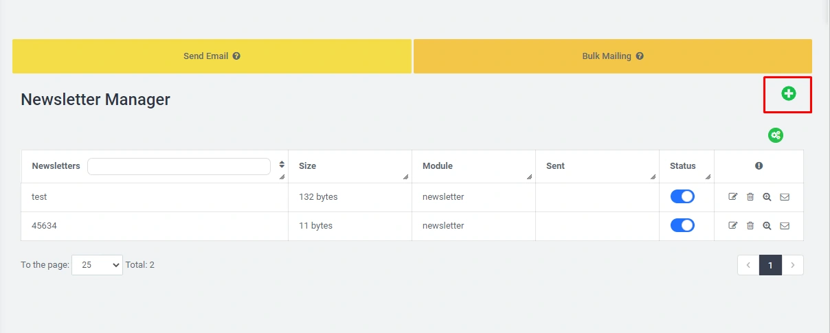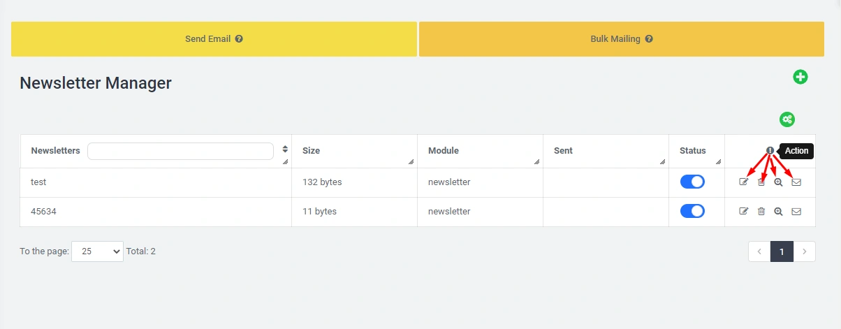and also in the “action” column you have the ability to manage bulk email templates - edit, delete, view or send: