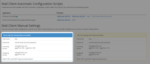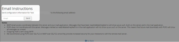 When checking your mail settings in cPanel, you can send the device settings via email. Just fill in the field in the "Email instruction" section so that the configuration information is sent to the device of your choice.