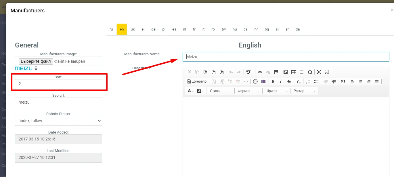 And also an important point is the sorting of brands, you can set the output priority for each manufacturer. To do this, in the manufacturer's card in the "Sort" column, set the desired priority from "0", where zero will be a higher priority.