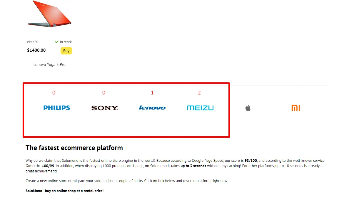 The Solomono team has developed a convenient functionality for working with the manufacturers block, where you can specify how many logos / blocks will be displayed for both the desktop and mobile versions, the required number of logos / blocks can also be set for different resolutions, there is a hint for each column for a given screen resolution.