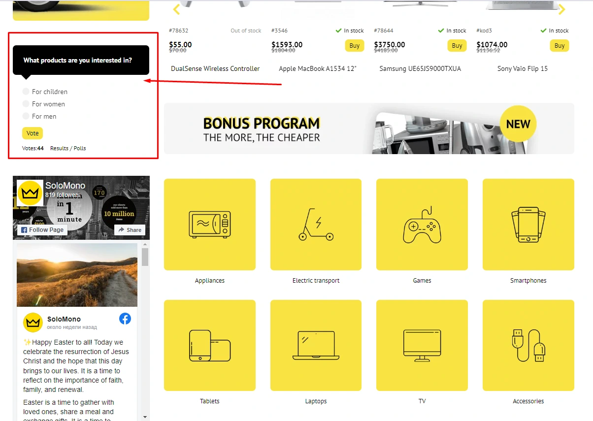 The Solomono team has developed a convenient functionality for working with the poll module in your online store.
