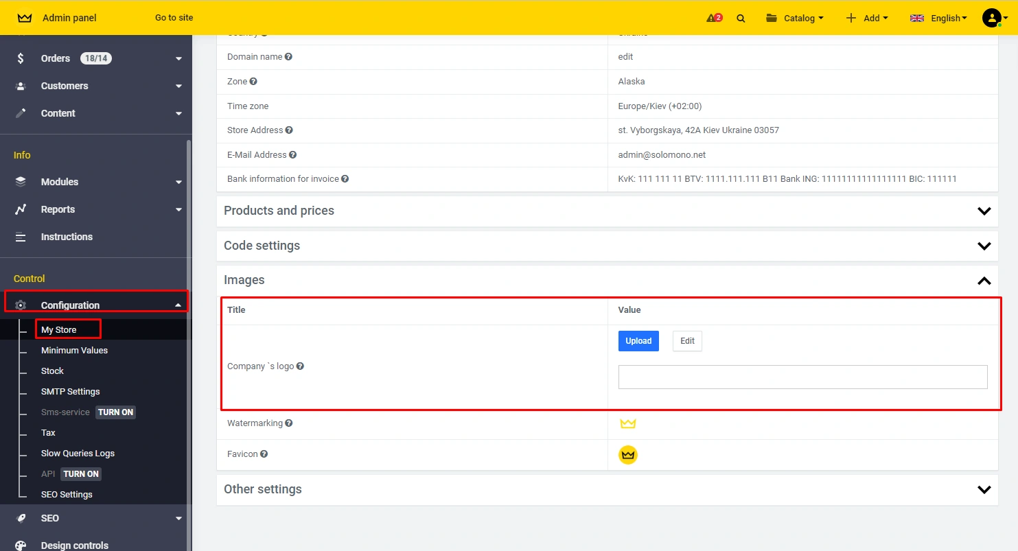 you need to go to the section “Settings” -> “My store” -> section: Images -> click “Upload” -> “Select file” -> “ok”: