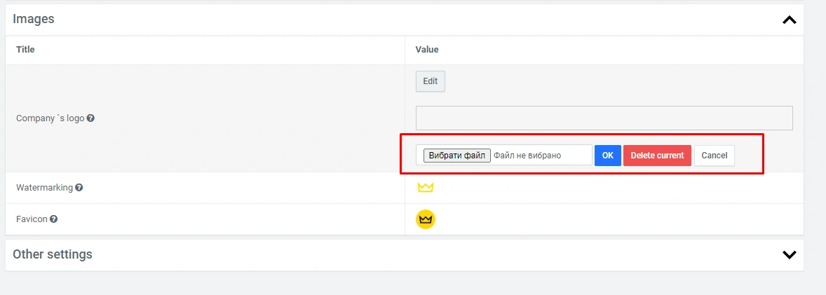 In addition, in the My store / Images section, the logo image cropping function is available, which allows you to adjust the proportions of the image inside the container. For example: the container is h50xw150px, and the image is 30x150 or 50x50 (more elongated or square).