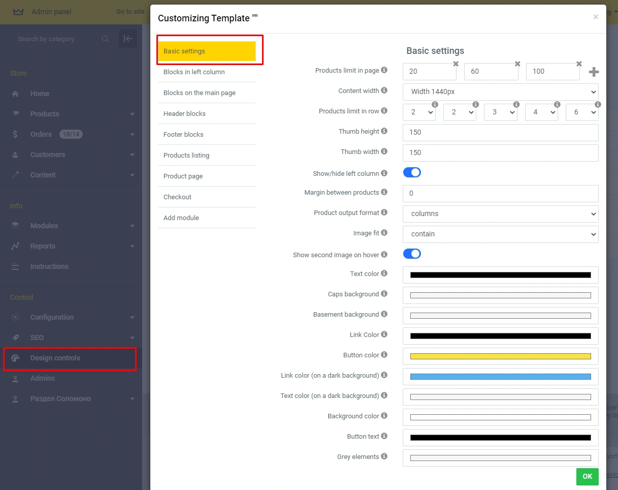 For a better understanding of the image settings, check the main customization of the admin panel in the "Design" -> "Adjusting the template" -> "Basic settings" section: