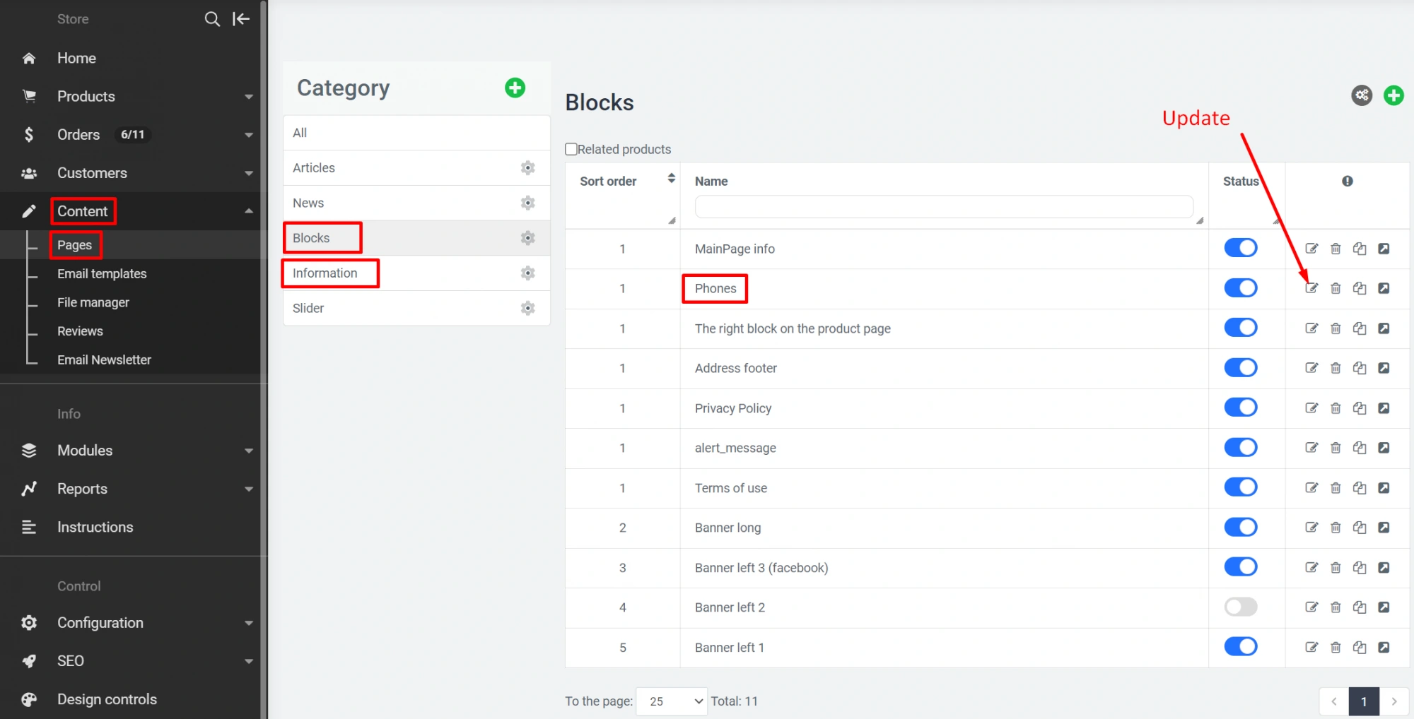 w sekcjach "Bloki" i Informacje zaktualizuj niezbędne artykuły.