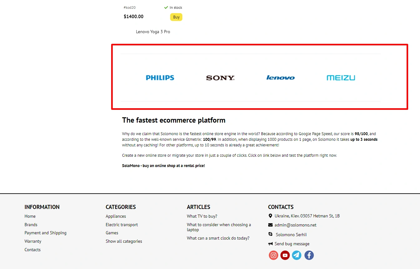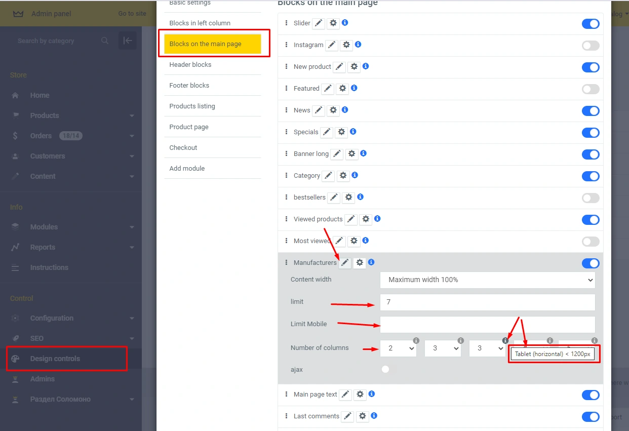 Zespół Solomono opracował wygodną funkcjonalność do pracy z blokiem producentów, gdzie można określić, ile logotypów/bloków będzie wyświetlanych zarówno dla wersji desktopowej, jak i mobilnej, można również ustawić wymaganą liczbę logotypów/bloków dla różnych rozdzielczości, istnieje podpowiedź dla każdej kolumny dla danej rozdzielczości ekranu.