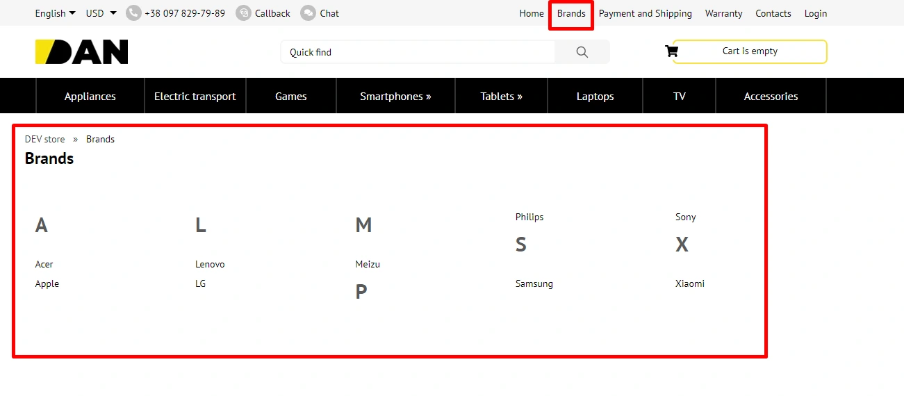 Ważnym punktem jest również sortowanie marek, możesz ustawić priorytet wyjściowy dla każdego producenta. W tym celu należy w karcie producenta w kolumnie „Sortuj” ustawić żądany priorytet od „0”, gdzie zero będzie priorytetem wyższym.
