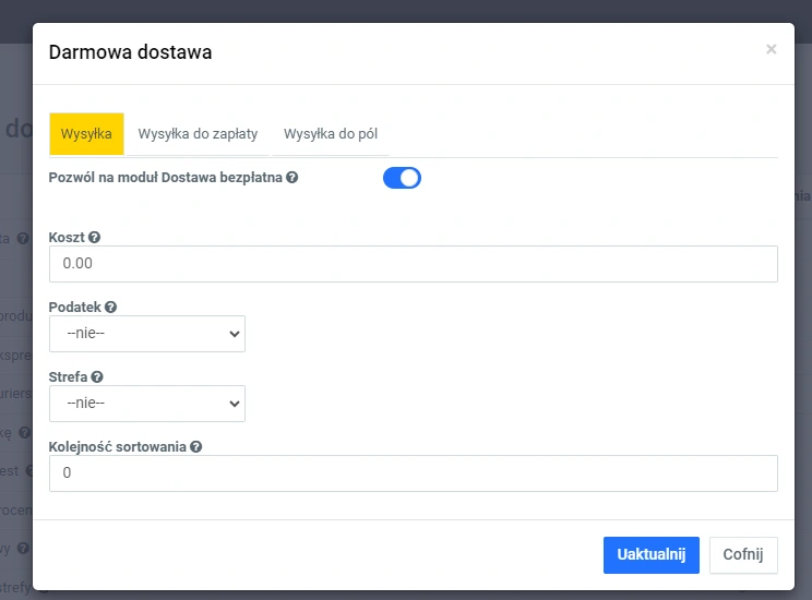 Teraz podczas realizacji transakcji dostępny będzie moduł „Darmowa dostawa”.