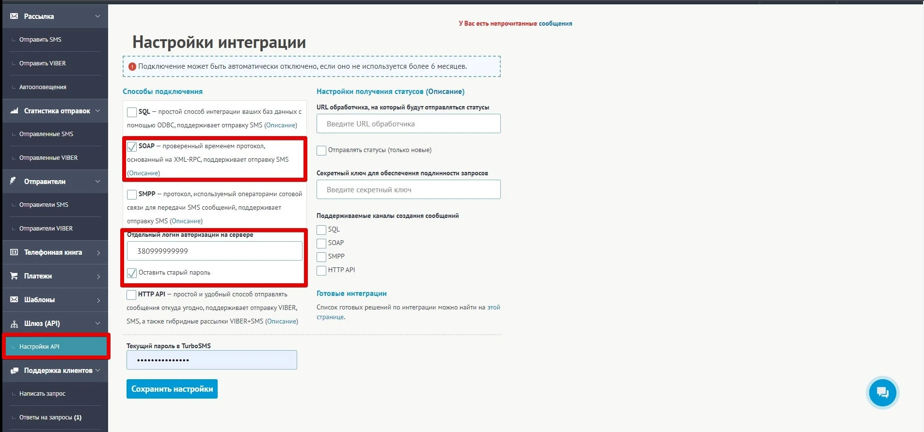 Przejdź do ustawień modułu sms-service i wypełnij pola: