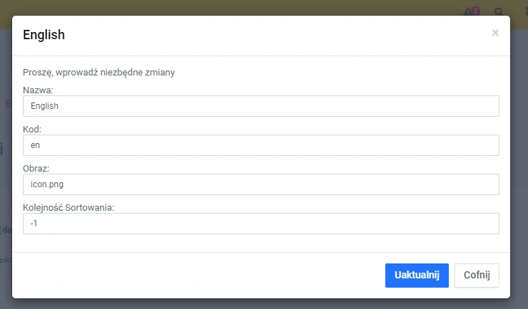 W panelu administracyjnym -> Moduły -> Języki -> zakładka "Języki":