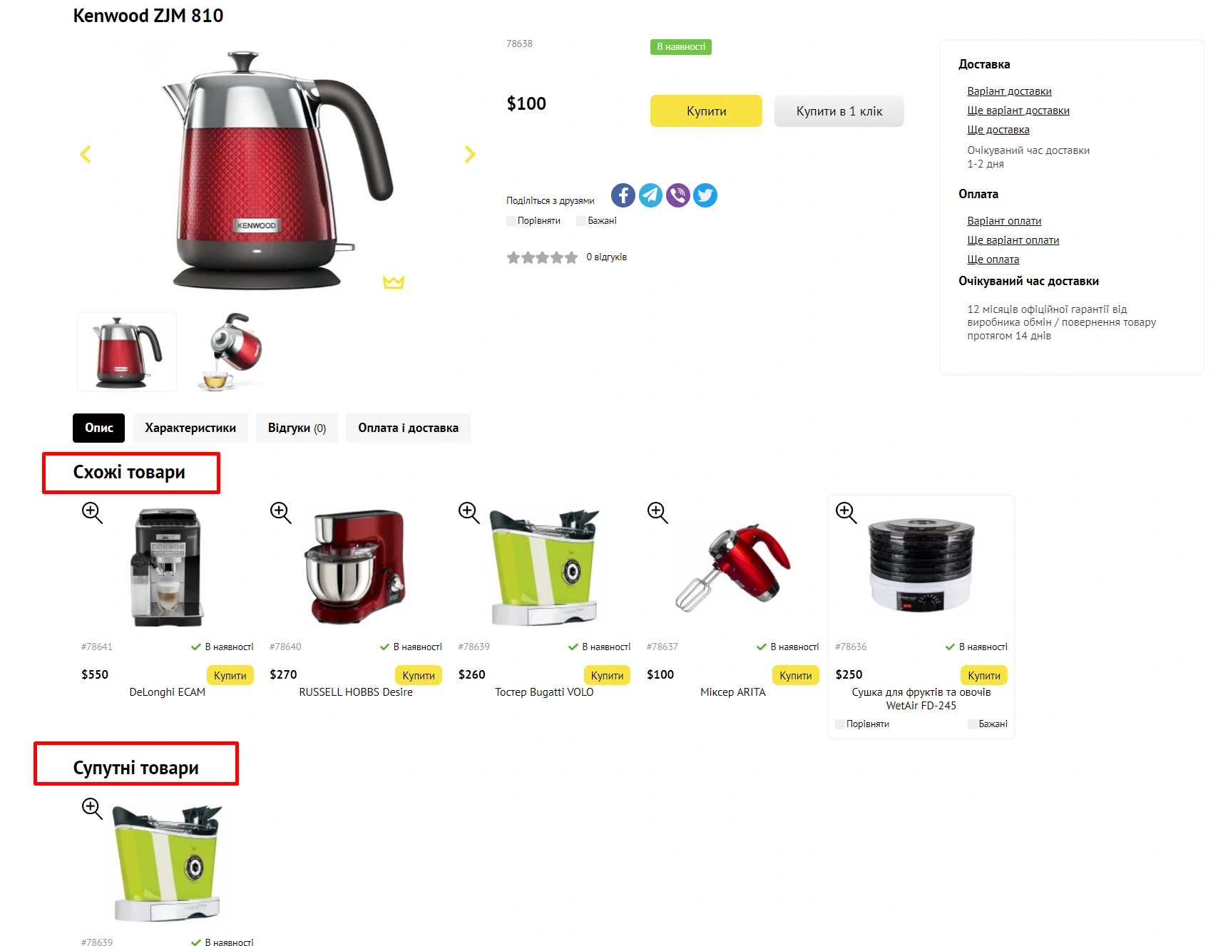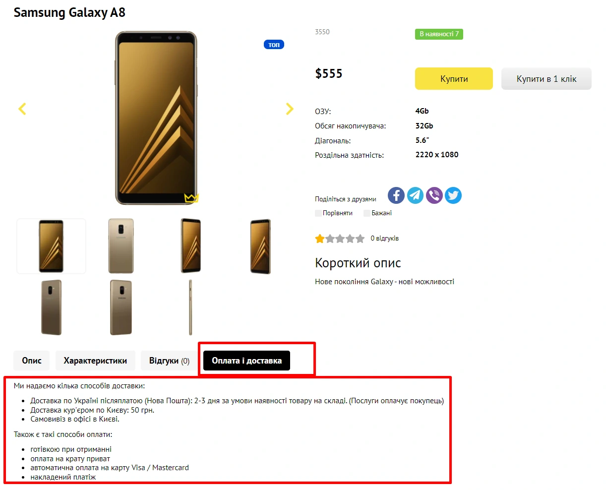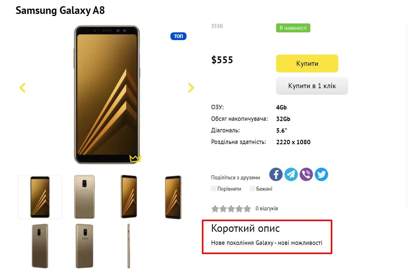 Настройка страницы товара вашего сайта осуществляется через панель администрирования: страница "Настройки" - "Дизайн" - настройка дизайна шаблона - раздел "Страница товара".