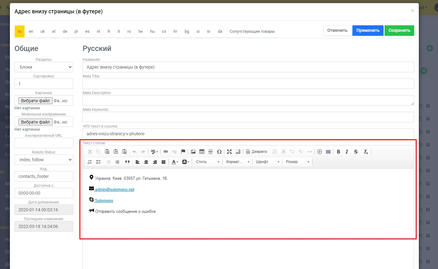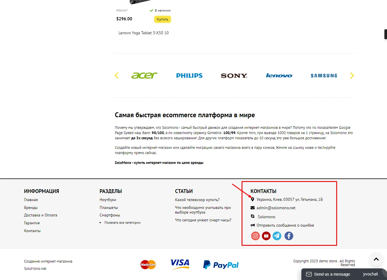 Добавить/изменить адрес в футере (подвале) Вашего интернет магазина