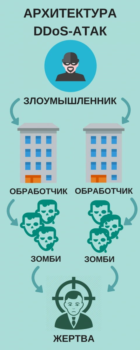 DDoS или Distributed Denial of Service — это когда на сервер отправляется множество запросов с тысячи зараженных компьютеров. В результате этого сервер не справляется с такой нагрузкой и прекращает свою работу. Цель такой атаки ясна — нарушение работы сервера или вовсе его “падение”.