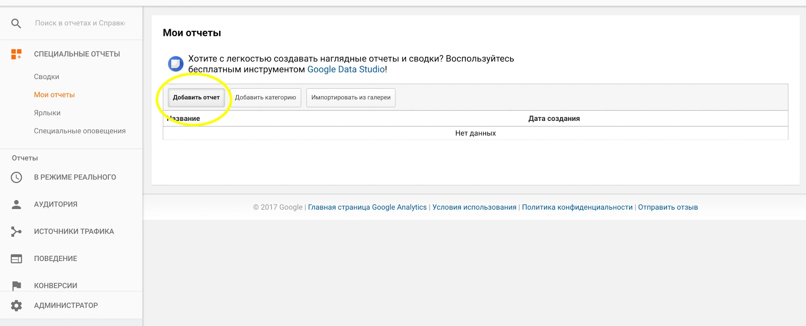 Далее: вкладка «Мои отчеты» → нажмите «Добавить отчет».