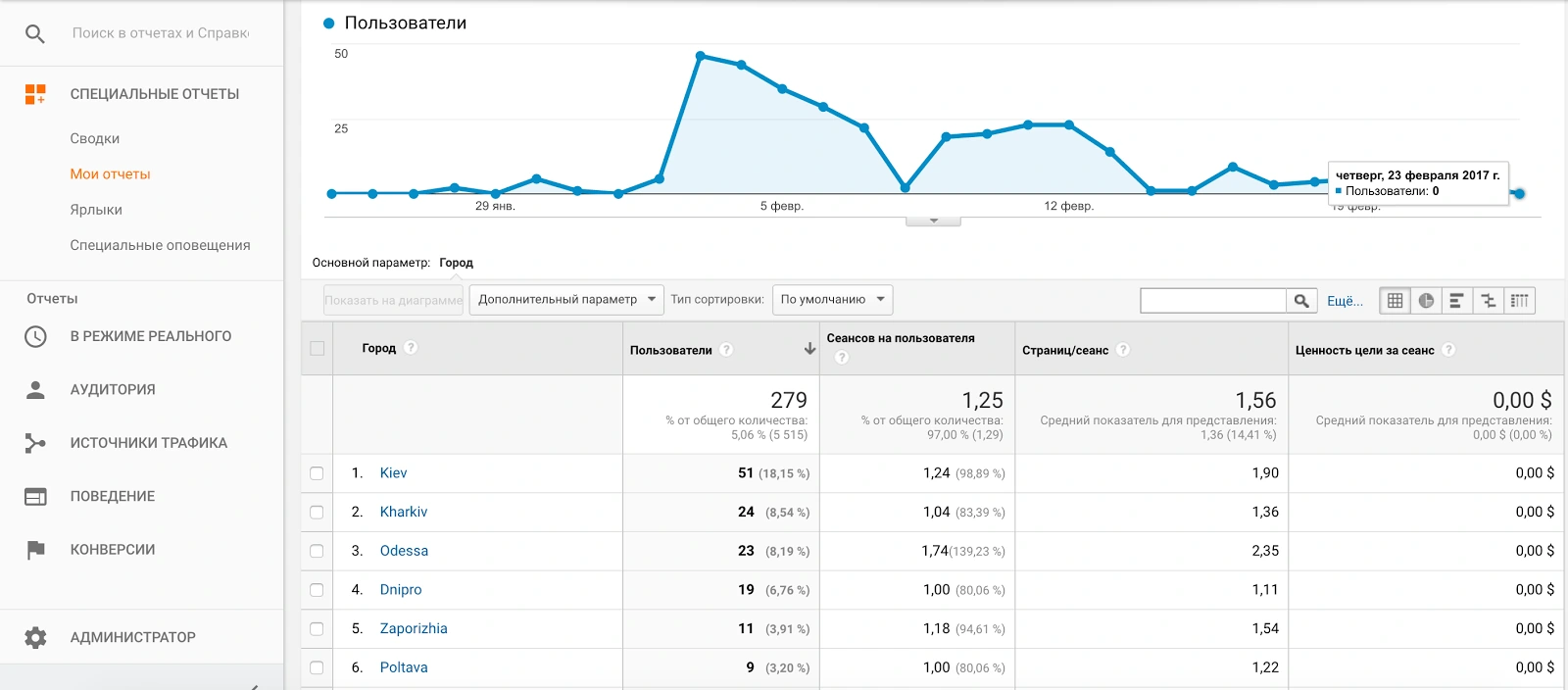 С этим отчетом мы можем видеть какие соцсети пользуются популярностью у нашей ца, где реклама работает правильно и посетители из каких городов проводят больше/меньше времени на сайте.