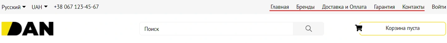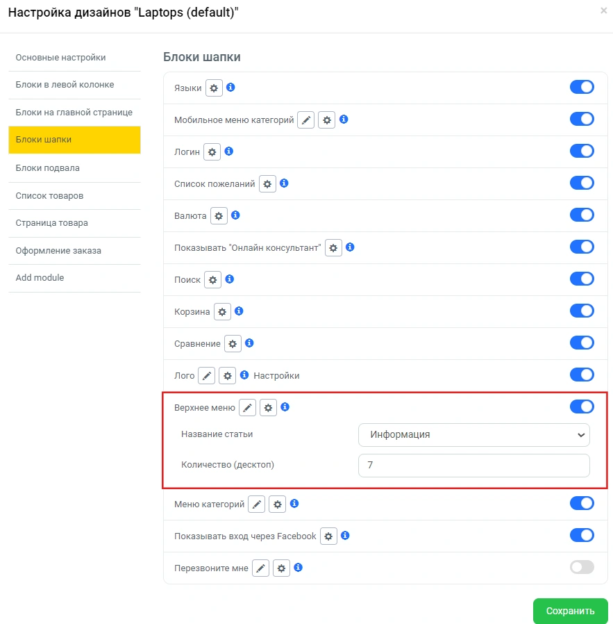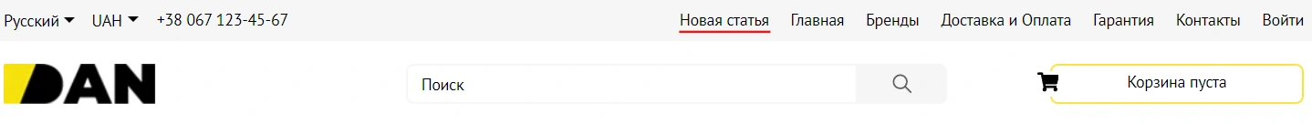 Соответственно, все включенные статьи в этом разделе вы сможете видеть в шапке вашего магазина.