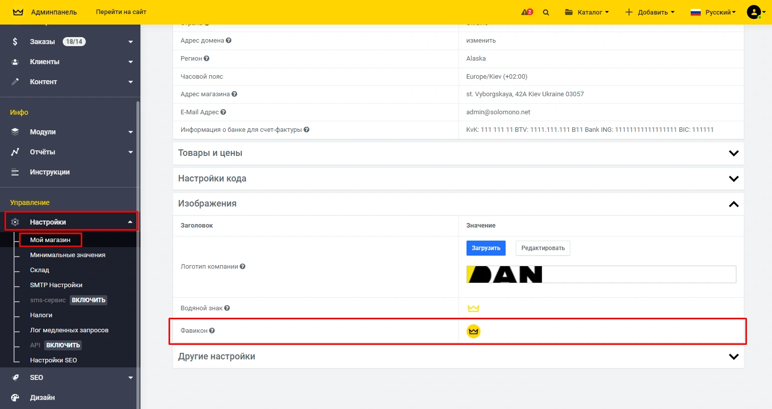 В панели администрирования -> "Настройки" -> "Мой магазин" -> "Изображения":