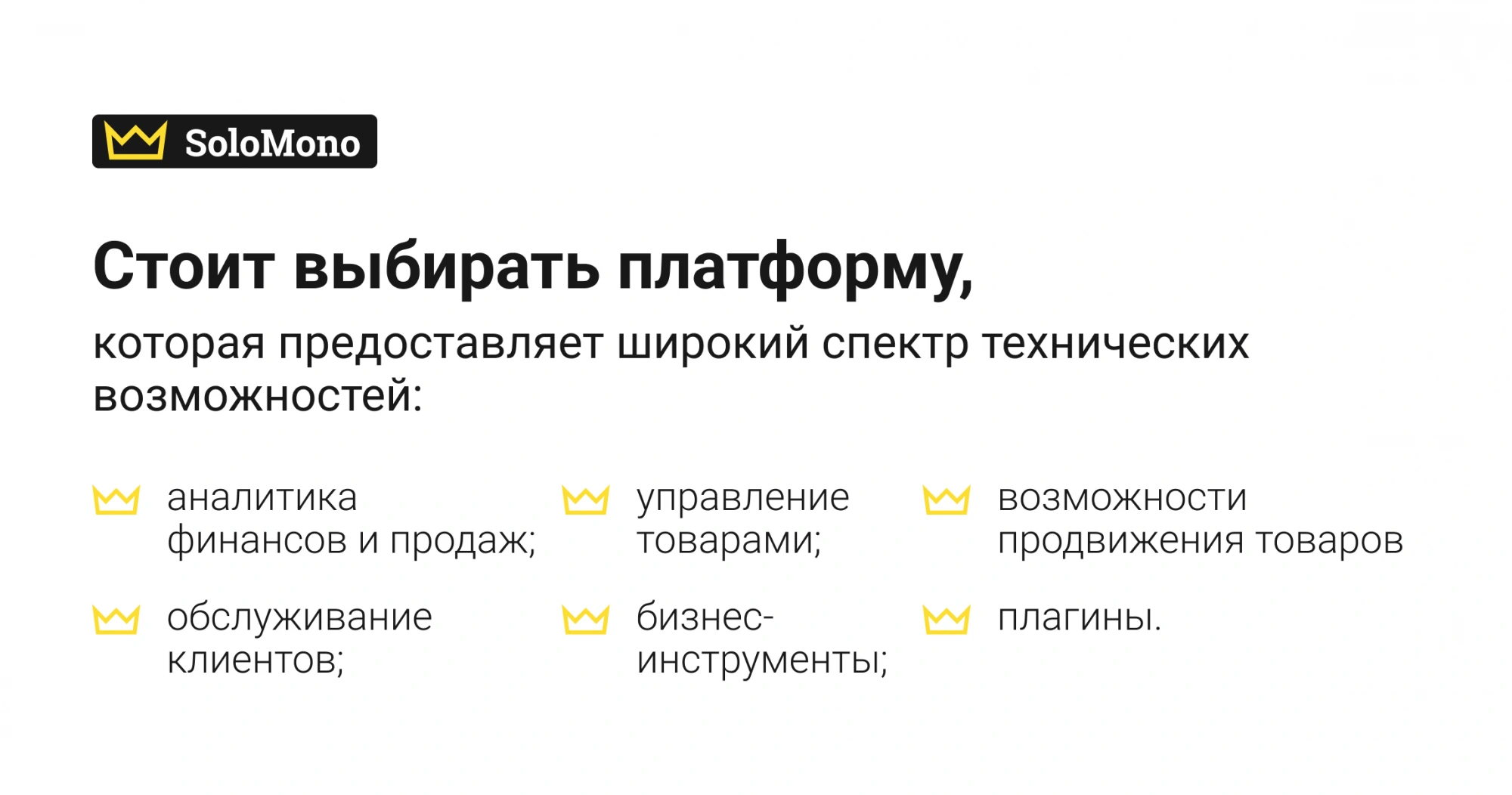 Функциональность платформы должна удовлетворять потребности вашего бизнеса и всячески способствовать продажам.