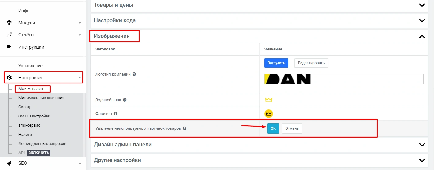 Для этого перейдите в раздел "Настройки" -> "Мой магазин" -> "Изображения" и выберите пункт "Удаление неиспользуемых картинок товаров", нажмите "изменить", и если Вам нужно удалить картинки которые не используются -> нажмите "ок"