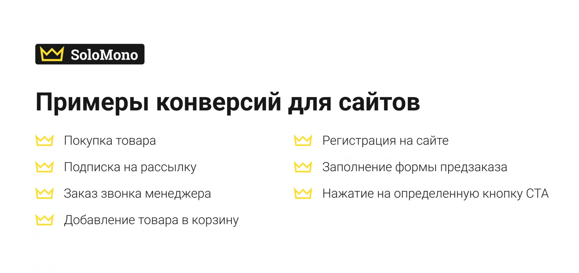 Для интернет-магазинов главные конверсии — заказ или предзаказ товара. Ведь основное преимущество таких площадок заключается в том, что клиент самостоятельно проходит почти весь процесс покупки.