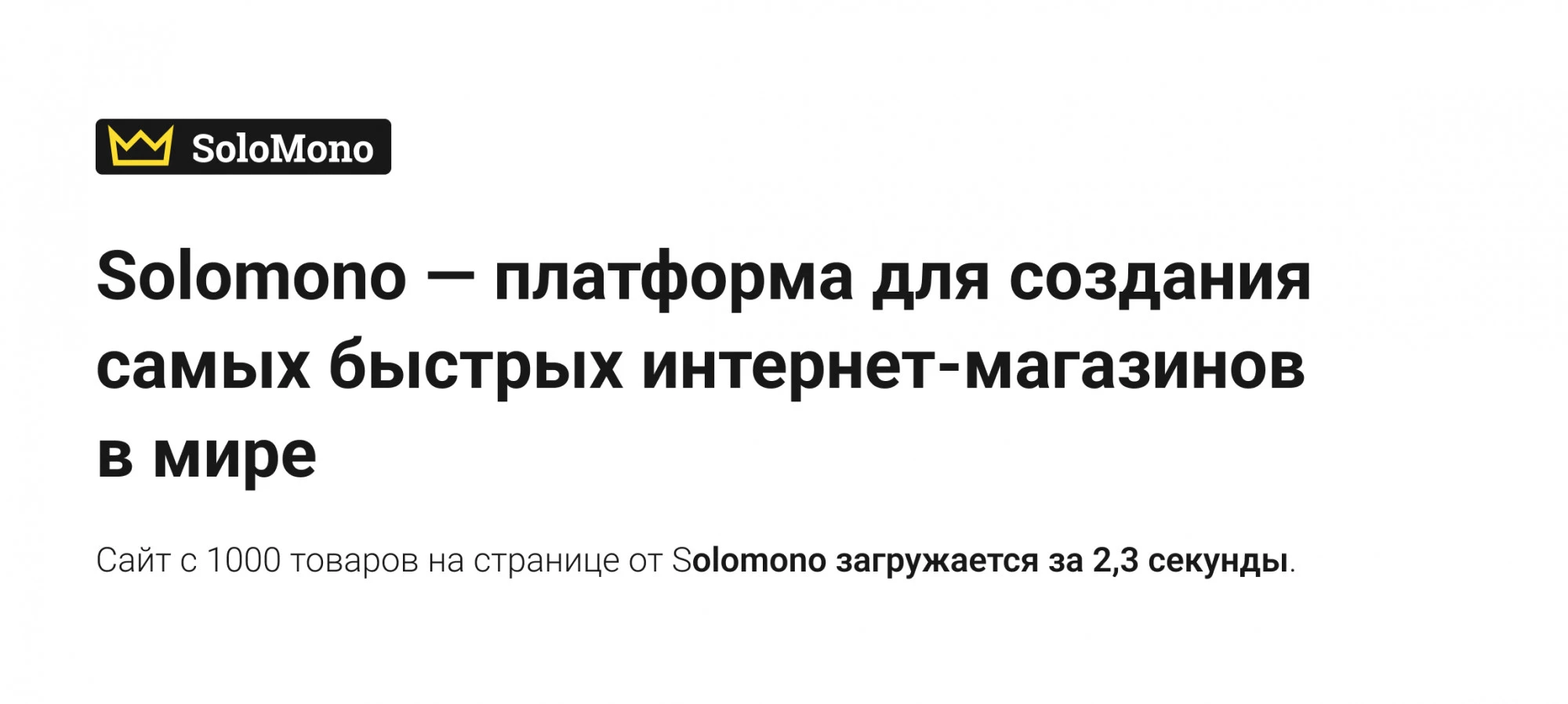 Например, сайт с 1000 товаров на странице от Solomono загружается за 2,3 секунды. А сайт с таким же количеством товаров на Magento будет грузиться 10 секунд. Соответственно показатели конверсии между подобными сайтами на разных платформах будут заметно отличаться.